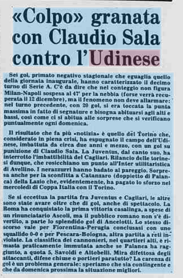 Colpo granata con Claudio Sala contro l'Udinese. E' il 25 novembre 1979.