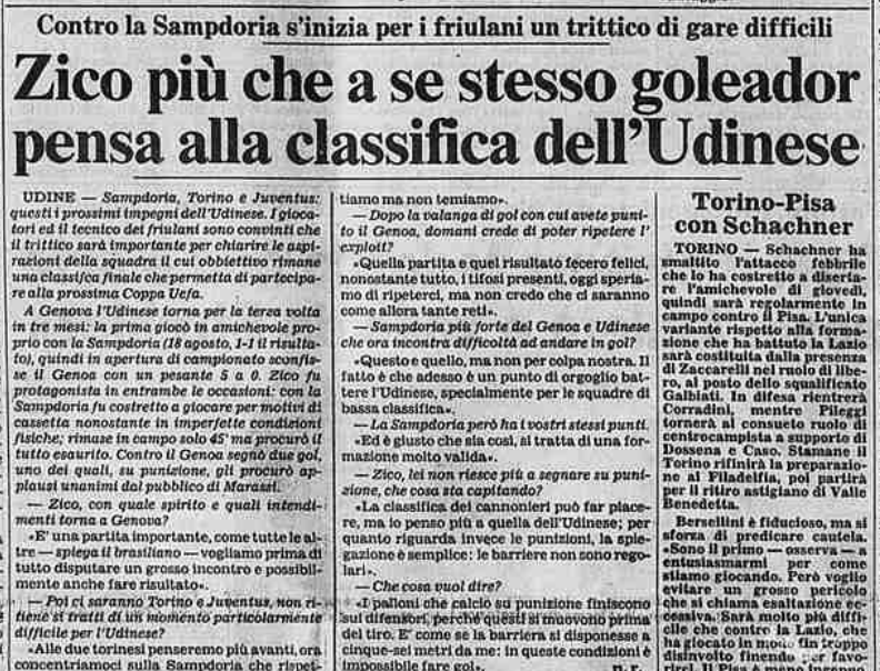Zico non pena tanto alla classifica marcatori, quanto a quella dell'Udinese. E' il 26 novembre 1983.