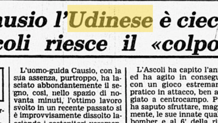 L'Udinese priva di Causio perde in casa con l'Ascoli 2-0. E' il 27 gennaio 1982