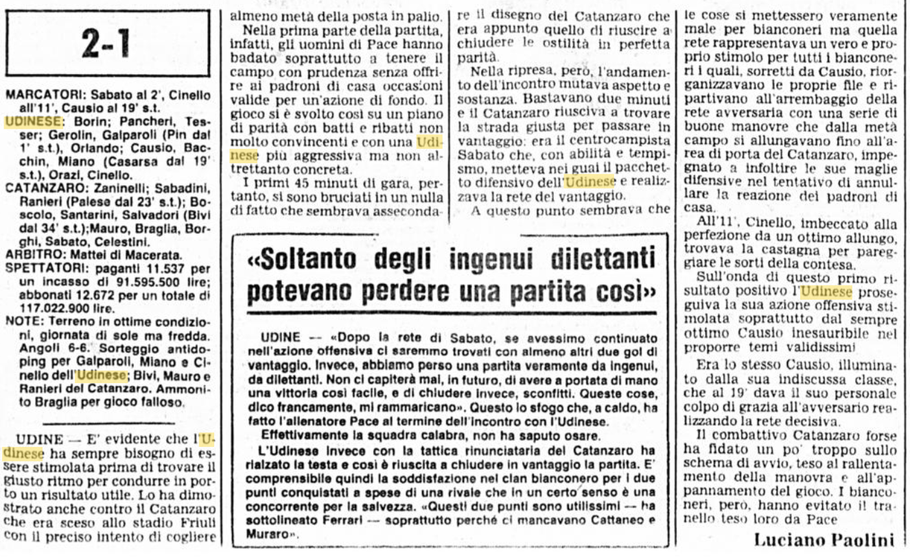 Causio prende in mano l'Udinese contro il catanzaro e vince 2-1: è il 27 novembre 1981