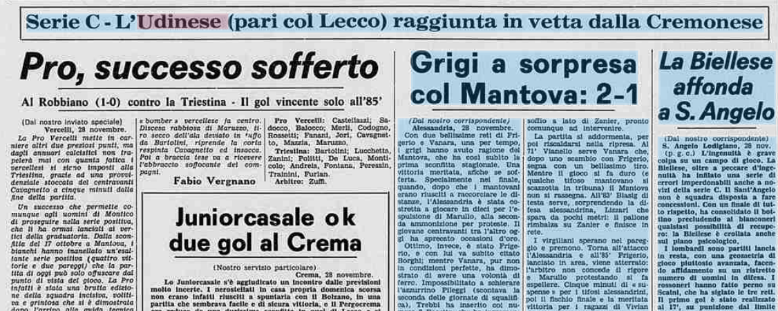 Accadde Oggi: L'Udinese pareggia col Lecco e perde la vetta solitaria della classifica di C