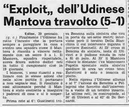 L'Udinese batte 5-1 il Mantova e consolida il primato nel girone A di Serie C: è il 28 gennaio 1978