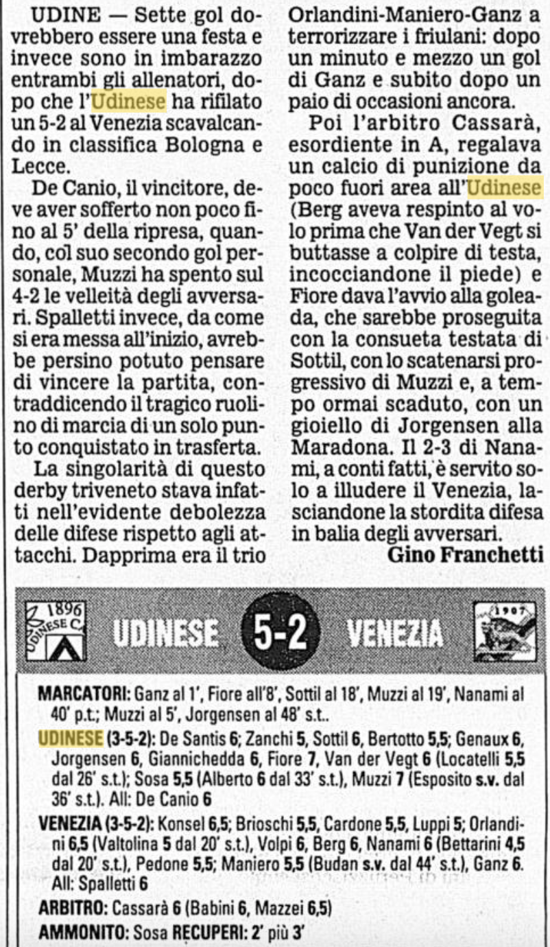 L'Udinese batte il Venezia di Spalletti vincendo anche il derby degli attacchi: è il 29 gennaio 2000