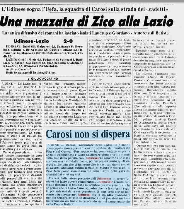 L'Udinese con Zico batte 2-0 la Lazio e sogna la Uefa- E' il 30 aprile 1984