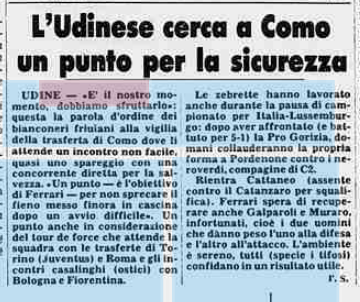 L'Udinese va in cerca a Como di un punto sicurezza. E' il 4 dicembre 1981. [caption id="attachment_48617" align="aligncenter" width="300"] La Stampa[/caption]