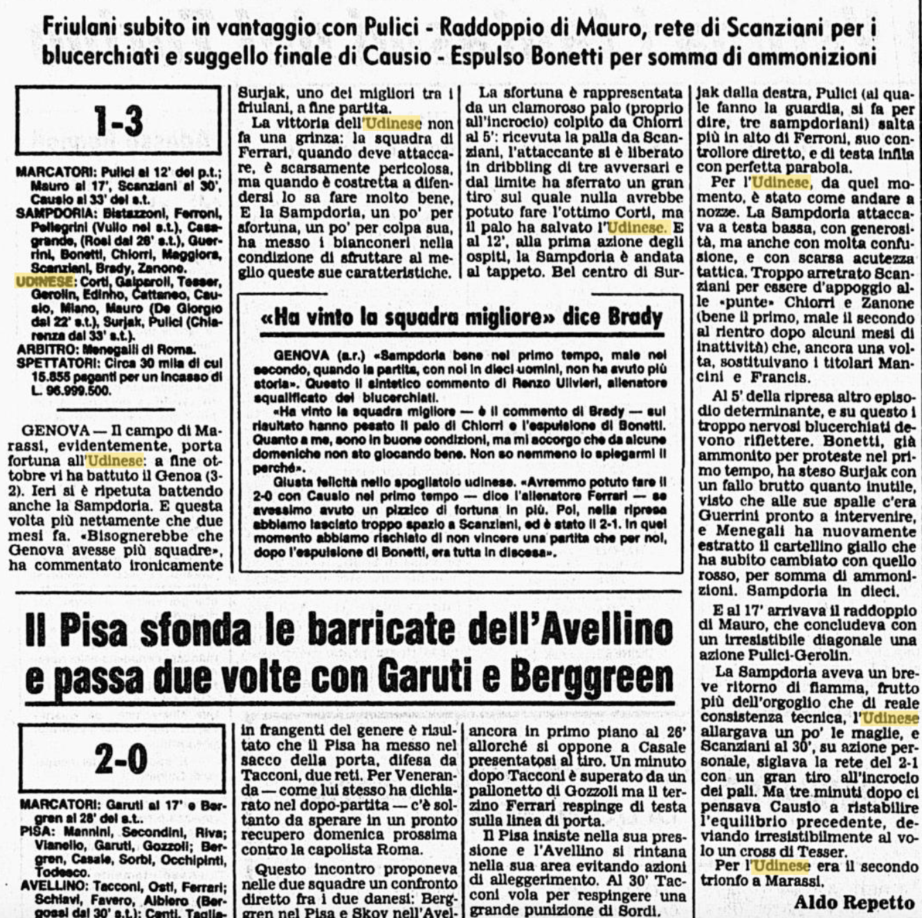 L'Udinese espugna ancora Marassi: è il 5 dicembre 1982 Redazione 5 dicembre - 00:55 Corsera © RIPRODUZIONE RISERVATA Commenta Continua la lettura Commenti Invia Commento Tutti Leggi altri commenti