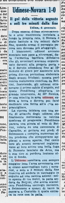 L'Udinese batte il Novara e comincia la sua marcia nell'anno 1955, è il 5 gennaio.