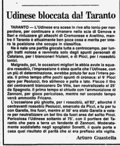 L'Udinese porta a casa un punto prezioso da Taranto: è il 5 marzo 1989