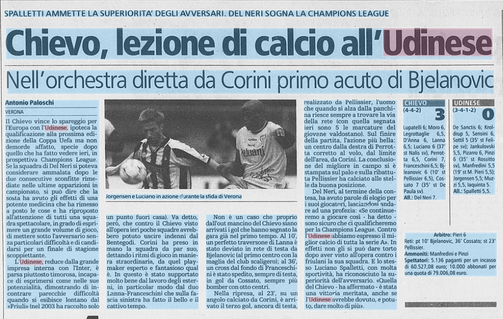 Nulla da fare per l'Udinese di Spalletti, che cade 3-0 col Chievo di Delneri