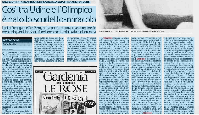 La Juve vince clamorosamente lo scudetto a scapito dell'Inter battendo l'Udinese. E' il 5 maggio 2002