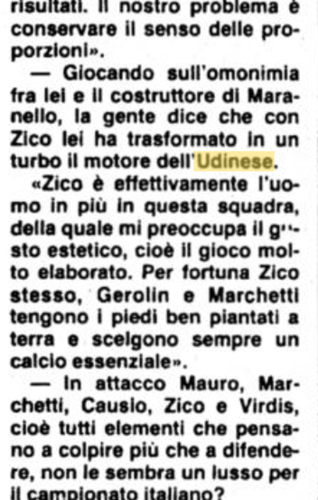 Zico ma non solo, l'Udinese appare sempre più come una squadra da vertice: è il 7 agosto 1983