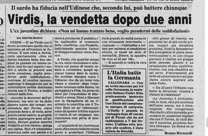 L'Udinese attende la Juve e Virdis cerca rivincite con la sua ex squadra. E' il 7 dicembre 1983.