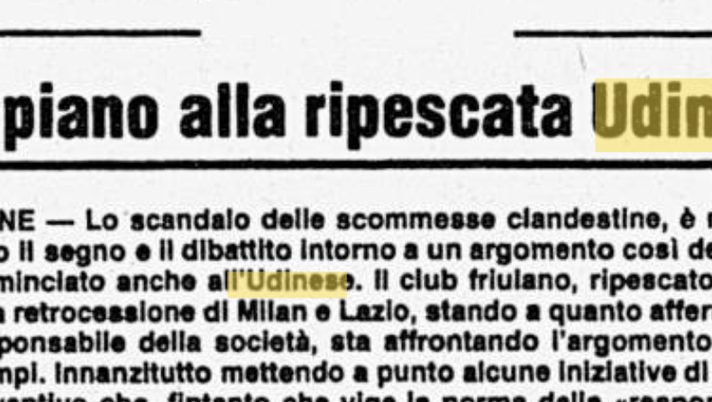 Accadde Oggi: 8/8/1080, Un piano alla rispescata Udinese