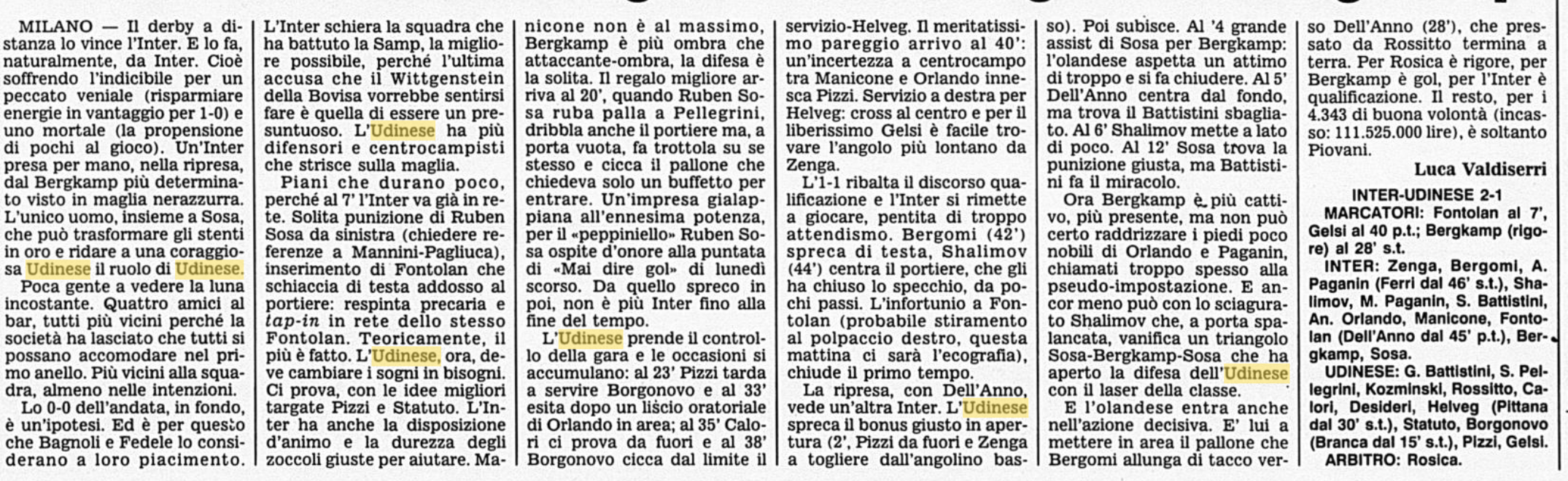 L'Udinese perde 2-1 contro l'Inter di Dennis Bergkamp Redazione 9 dicembre - 00:26 Cosera © RIPRODUZIONE RISERVATA Commenta Continua la lettura Commenti Invia Commento Tutti Leggi altri commenti