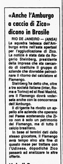 Zico lascerà l'Udinese, l?Amburgo chiede informazioni: è il 9 marzo 1985