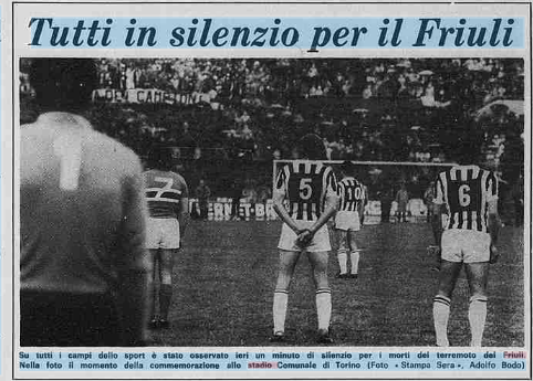 La giornata calcistica del 10 maggio 1976 comincia con un minuto di raccoglimento su tutti i campi di calcio d'Italia, dalla A ai dilettanti