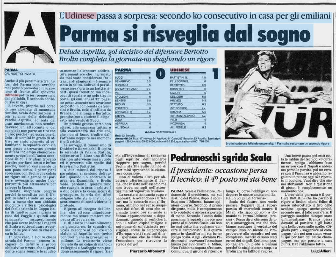 L'Udinese espugna Parma che si risveglia dai sogni: è il 9 gennaio 1994
