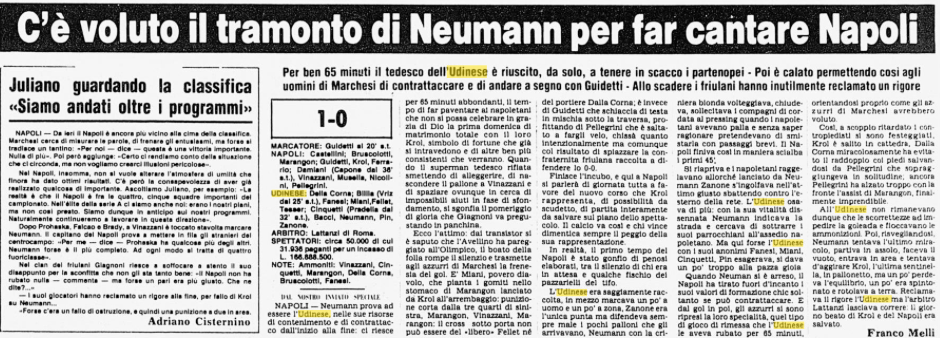 C'é voluto il tramonto di Neumann per far vincere il Napoli....E' il gennaio 1981