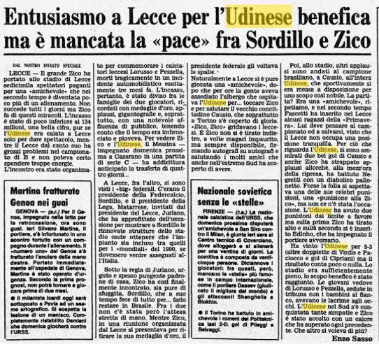 E' fine gennaio 1984, l'Udinese crea entusiasmo a Lecce, ma Zico non fa pace con Sordillo