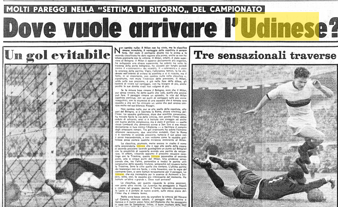 Marzo 1955, sboccia definitivamente l'Udinese che vola in classifica e sogna lo scudetto
