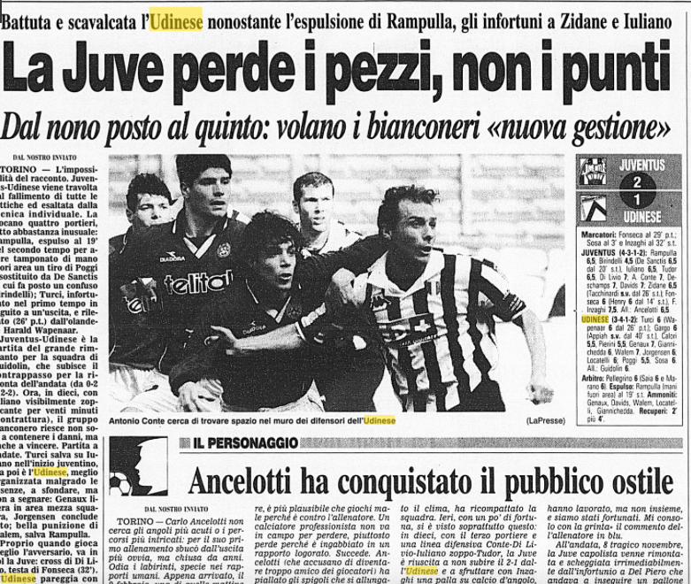 La Juve torna a sperare dell'Europa battendo l'Udinese, che invece ci finirà mandandola in Intertoto. E' il marzo 1999