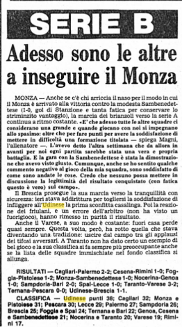 Marzo 1979, il Monza strappa il primato all'Udinese battuta dal Brescia al Friuli