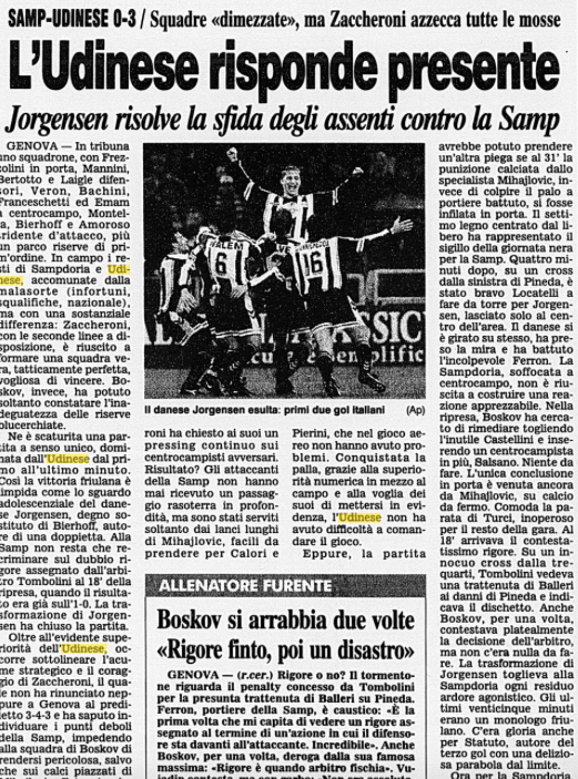 L'Udinese di Zac a fine febbraio 1998 schianta a Marassi la Samp e vola