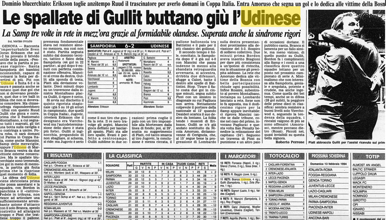 Nel febbraio 1994 sassate doriate all'Udinese Redazione 6 febbraio - 01:30 Corsera © RIPRODUZIONE RISERVATA Commenta Continua la lettura Commenti Invia Commento Tutti Leggi altri commenti