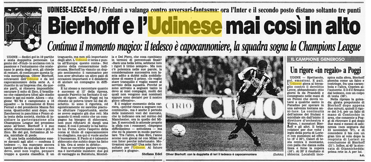 E' il febbraio 1998, l'Udinese schianta il Lecce 6-0 e vola Redazione 3 febbraio - 00:56 Corsera © RIPRODUZIONE RISERVATA Commenta Continua la lettura Commenti Invia Commento Tutti Leggi altri commenti