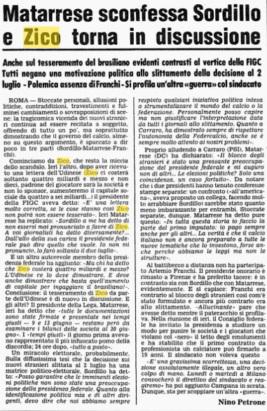 Zico a Udine torna in discussione. Matarrese infatti sconfessa Sordillo