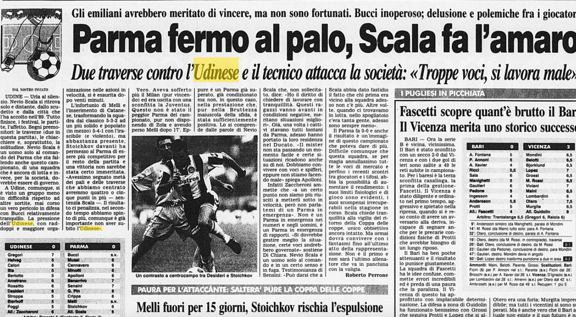 E' la fine di febbraio del 1996, il Parma dei grandi nomi si ferma davanti all'Udinese di Zac
