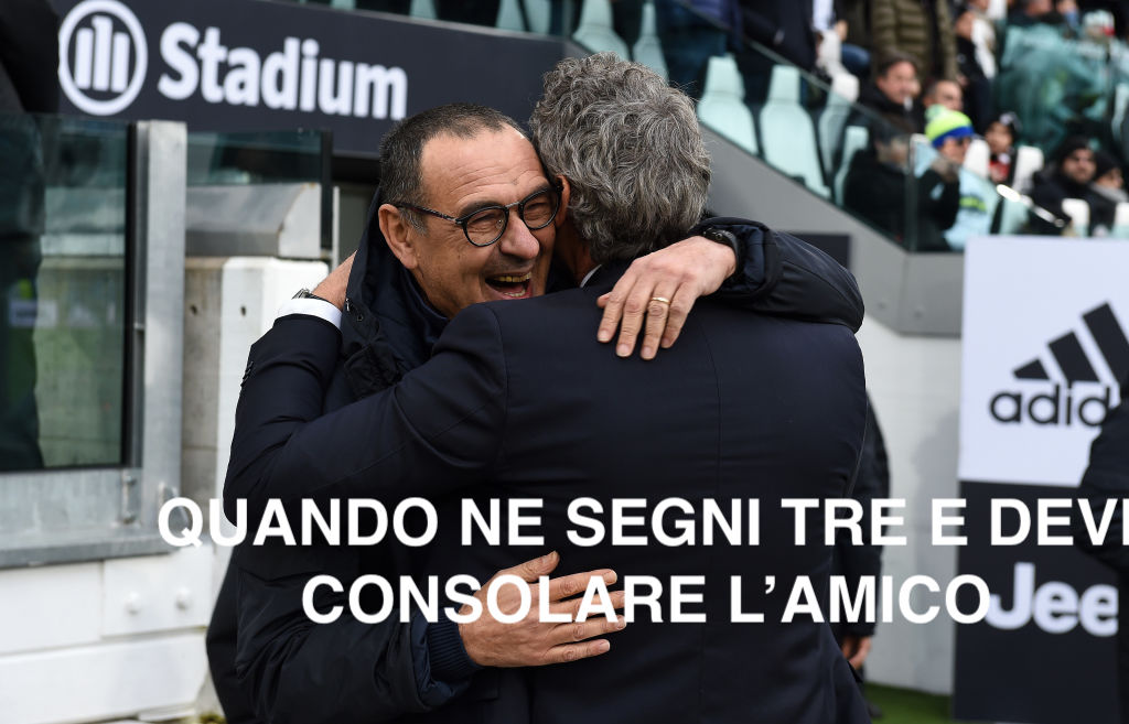 La vignetta: Gotti consolato da Sarri....che intanto ne segna tre all'amico