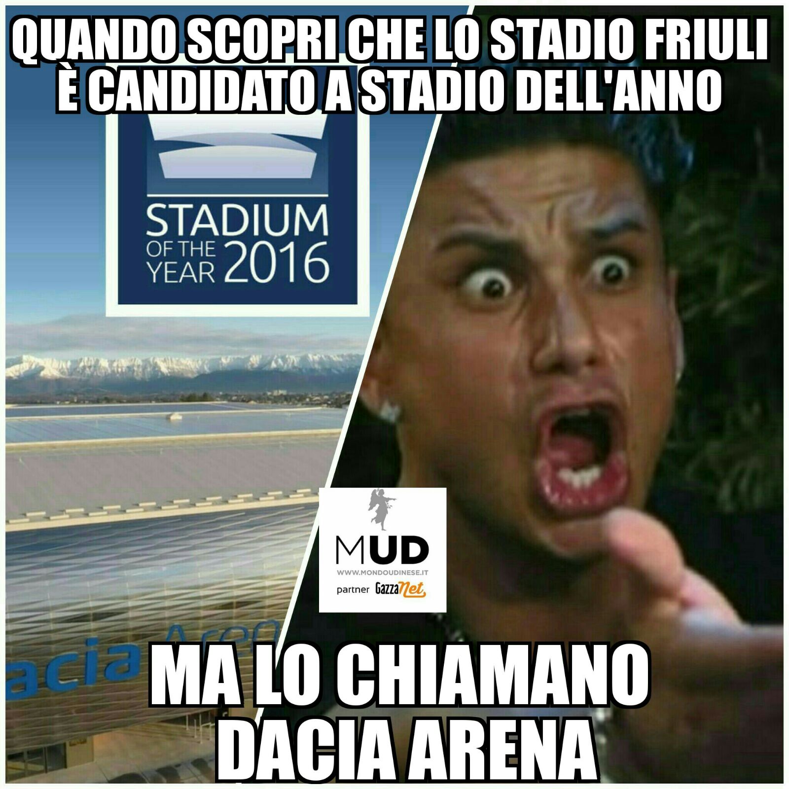 Stadio Friuli candidato a essere tra i migliori 20 d'Europa, potrebbe anche vincere. Ma intanto lo chiamano "Dacia....."