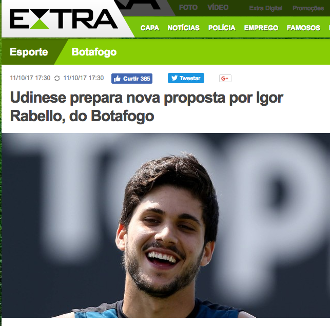 Alla fine di settembre il club brasiliano aveva rifiutato un'offerta di 3 milioni di euro per Rabello, legato al Botafogo fino al 2019.