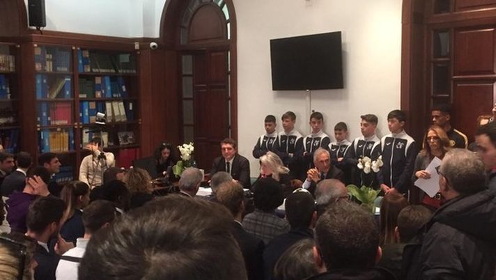 Una delegazione della squadra giovanile bianconera presente all'incontro "Un calcio al razzismo" organizzato dall'Ucei
