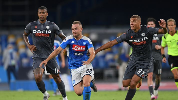 Vince il Napoli 2-1 al San Paolo contro un'ottima Udinese, il gol di Politano è arrivato ad un solo minuto dal termine. All’8 Zielinski prova il sinistro dal limite, Becao devia e salva Musso. Al 22’ dalla sinistra Zeegelaar con il cross in area di rigore, Lasagna con il velo favorisce l'inserimento in area dalla destra di De Paul che piazza il destro all'angolino battendo Ospina, vantaggio friulano 1-0. Al 24' minuto ci prova Mario Rui con il mancino da fuori, Musso para. Al 31’ dopo l'uscita di Mertens per infortunio, entra Milik che approfitta di una situazione favorevole con Fabian Ruiz che serve il polacco che sotto misura sigla il pareggio a 30 secondi dal suo ingresso in campo. Al 42’ Hysaj con il cross dalla destra, Insigne gira di testa ma Musso è attento e blocca. Nel secondo tempo la prima occasione è del Napoli con Zielinski che al minuto numero 60, prova la gran botta con il destro, il pallone si stampa sulla traversa e poi sulla line ma non entra in porta. Al 69’ Lasagna con il destro a botta sicura dopo un errore di Manolas, ma Ospina d'istinto mette in corner. All’80’ è Mario Rui prova da fuori, palla alta di poco. Minuto 84, De Paul dopo un contropiede orchestrato da Lasagna, prova il tocco sotto, la palla supera Ospina ma Koulibaly salva sulla linea mandando la sfera sulla traversa. Al minuto numero 95 ad un minuto dalla fine, Politano sulla destra, rientra sul mancino al vertice dell'area disegna una traiettoria che batte Musso all'incrocio. Il Napoli passa all'ultimo respiro, l'Udinese perde un occasione per avvicinare la salvezza.