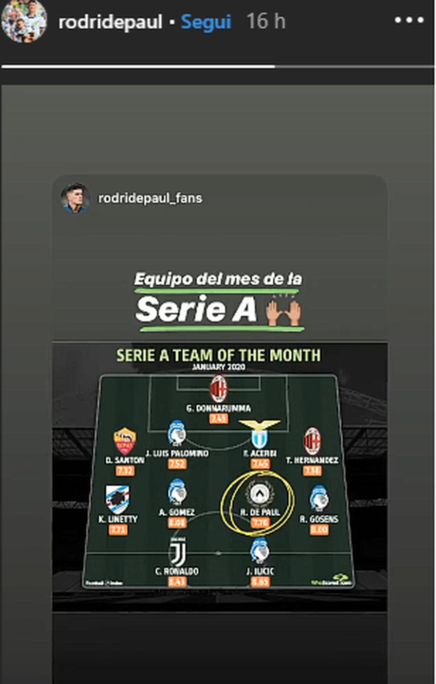 Un riconoscimento, quello di essere scelto tra i migliori undici della Serie A, che ha fatto felice De Paul. Il giocatore dell'Udinese esulta sui social