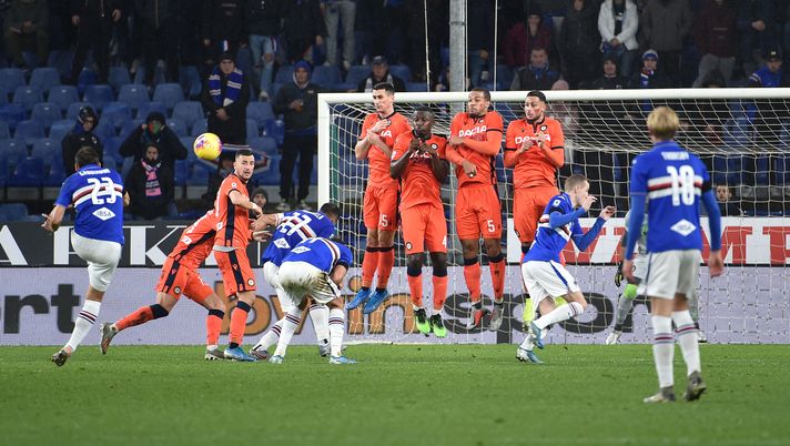 "L'idea sembra premiare: le due linee dell'Udinese si difendono corte e compatte, tanto che gli unici sbocchi per la manovra della Sampdoria arrivano dalle fasce. I bianconeri riescono anche ad allentare la pressione proponendosi in avanti: Lasagna manda fuori di un niente su invito di Nuytinck.