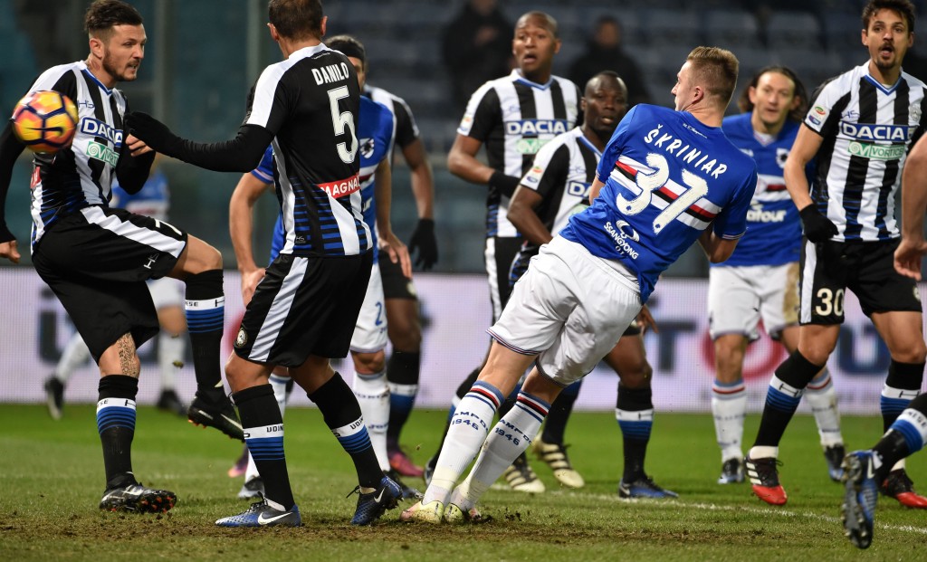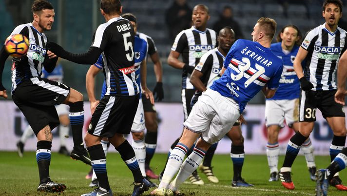 Nella ripresa Samp che cerca di premere sull'acceleratore, Udinese guardinga. I blucerchiato fanno pressing e sempre più alto, in mezzo i bianconeri soffrono, al 60' punizione dal limite, Muriel tocca per Quagliarella che calcia e colpisce la barriera. al 69' Quagliarella controlla di petto e da posizione defilatissima calcia ad incrociare sul palo lontano: si stende e prolunga in corner Karnezis, protagonista in questa occasione.
