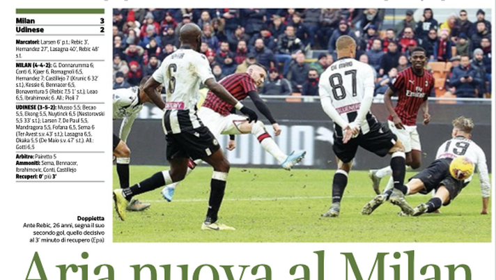 Il commento del Corriere della Sera alla vittoria del Milan sull'Udinese.