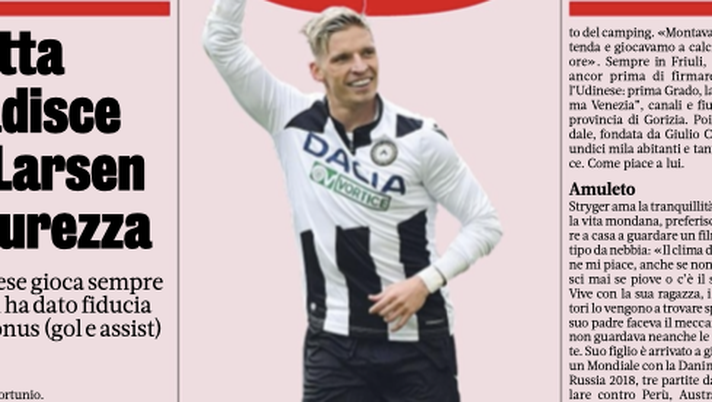 La Gazzetta dedica una pagina su Larsen, la sicurezza a destra per l'Udinese.