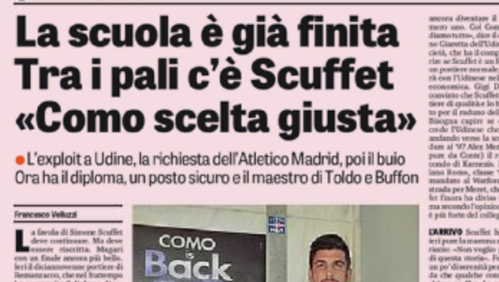 Nelle pagine sulla Serie B, ampio spazio per Simone Scuffet al Como per la Gazzetta. La favola di Simone Scuffet deve continuare. Ma deve essere riscritta. Magari con un finale ancora più bello. Ieri il diciannovenne portiere di Remanzacco, che...