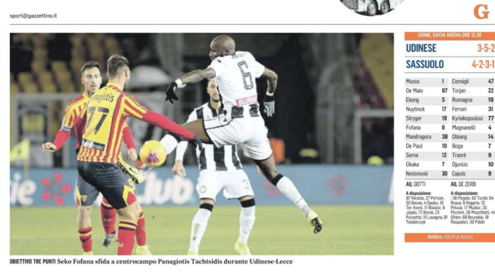Il punto sull'Udinese su Il gazzettino o in attesa del Sassuolo.