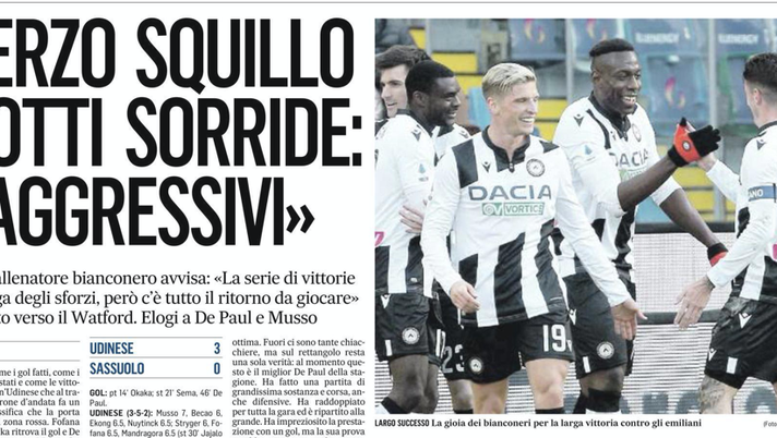 Il punto de IL Gazzettino sull'Udinese dopo la vittoria sul Sassuolo.