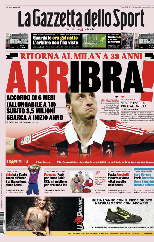 Le prime di Gazzetta, Tuttosport e Corsport del 27 dicembre 2019