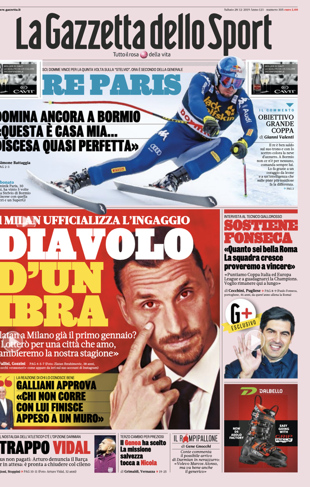 le prime pagine di Gazzetta, Tuttosport e Corriere dello Sport del 28 dicembre 2019