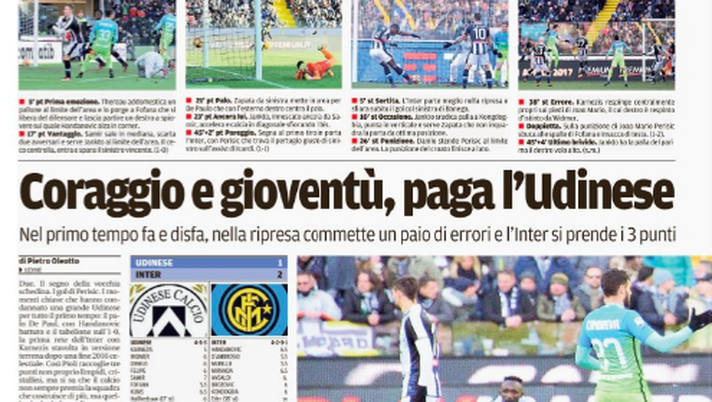 Due. Il segno della vecchia schedina. I gol di Perisic. I momenti chiave che hanno condannato una grande Udinese per tutto il primo tempo: il palo De Paul, con Handanovic battuto e il tabellone sull’1-0, la prima rete dell’Inter con Karnezis stavolta in versione terrena dopo una fine 2016 celestiale. Così Pioli raccoglie tre punti non proprio limpidi, cristallini, ma si sa che il calcio non sempre premia la squadra che costruisce di più, ma quella che ha la forza di raccattare tutto quello che trova per strada e l’Inter l’ha fatto nonostante un Icardi in sciopero per tutta la partita. Ci ha pensato Ivan il terribile, mentre dall’altra parte Jankto cercato di surrogare un Thereau in forma imperfetta (non si è allenato per una settimana con il resto del gruppo) e uno Zapata che, pur dimostrandosi un irrinunciabile punto di riferimento, ha evidenziato i soliti problemi in fase conclusiva. E un centravanti deve fare gol, non può chiudere il girone d’andata a quota 5 (di cui uno su rigore), sui 25 di squadra. Ma se l’Udinese è riuscita a competere ad armi pari con l'Inter per 87 minuti, se per mezz’ora (la prima) ha imbastito almeno quattro occasioni da gol, lo deve alle iniziative dei sui giovani, gente che complessivamente ha meno di cinquanta presenze in serie A, un’età media di 21 anni e mezzo: il già citato Jankto, Samir (suo l’assist per il gol), De Paul (palo) e Fofana (miracolo di Handanovic). Facile capire che, complice il peso dell’inesperienza, dopo il magic moment vissuto con le ali piedi, l’Udinese abbia pagato qualche erroruccio individuale e di squadra nella ripresa, contribuendo a lasciare l’amaro in bocca ai due terzi di stadio bianconeri (almeno ottomila gli interisti presenti sugli spalti dell’impianto dei Rizzi). In soldoni delusione per il risultato, speranza per il futuro,