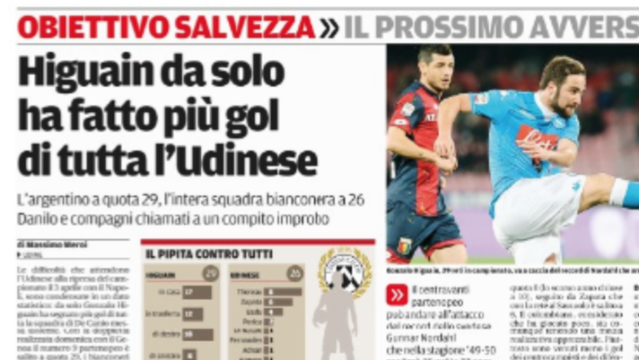Messaggero Veneto: Higuain da solo ha fatto più gol di tutta l’Udinese