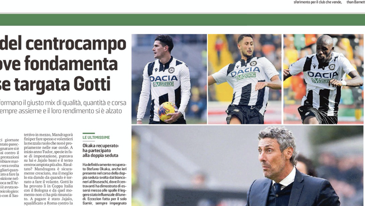 Messaggero Veneto: I tre tenori del centrocampo sono le nuove fondamenta dell’Udinese targata Gotti