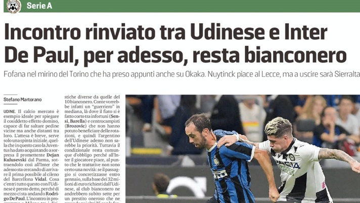 Messaggero Veneto: Incontro rinviato tra Udinese e Inter De Paul, per adesso, resta bianconero